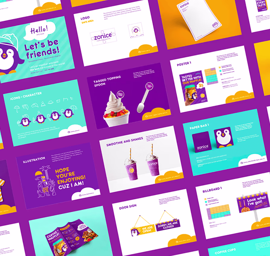 عملنا على تطوير هوية مرحة وعصرية لعلامة زونيس، شملت تصميماً جريئاً للعناصر البصرية، والعبوات، والديكورات الداخلية، مع تعريب متكامل للهوية. ساهمت الإرشادات الواضحة والتميمة المرِحة على شكل بطريق في دعم توسّع العلامة بنظام الامتياز التجاري، مما جعل زونيس تبرز محلياً وتستعد للانتشار عالمياً..